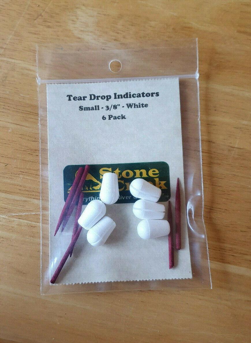 These EZ-Indicators tear drop strike indicators are perfect for jig, drift and fly fishing. Just situate them wherever you want on the line and insert the tooth pick. It doesn't kink your line, and you can adjust your float whenever you want. It's easy!