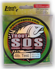 Trout S.O.S. Green is designed for stealth and is almost invisible in the water. Trout S.O.S. Green is great for trout, but can also be used for any light line fishing. The effectiveness is described in the name: Strong, Obscure, Small.S.O.S. is a copolymer line that is soft and easy to cast, it has excellent stretch and abrasion characteristics that make it the perfect line for light-line fishing.