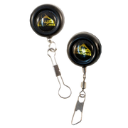 These tool retractors or "zingers" pin or clip to your vest and hold tools, floatants, drying cloths, etc. The stainless steel cord inside extends 18 inches.