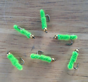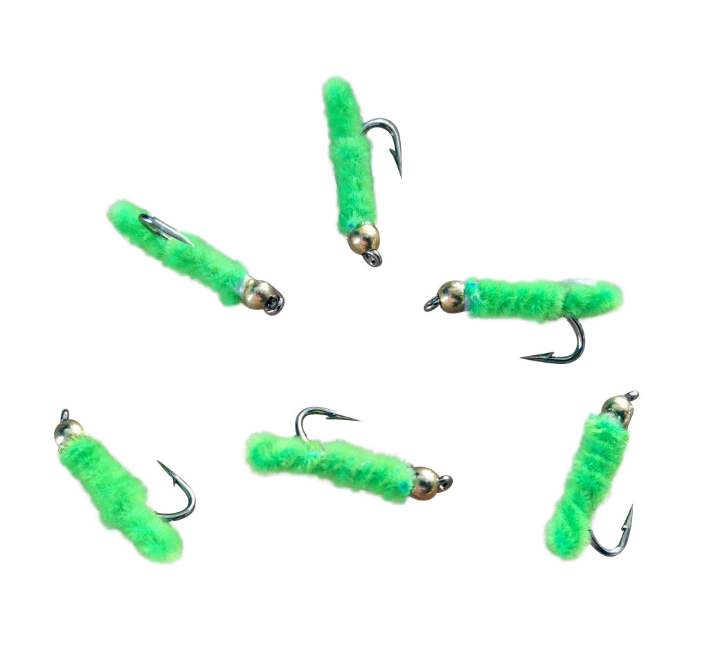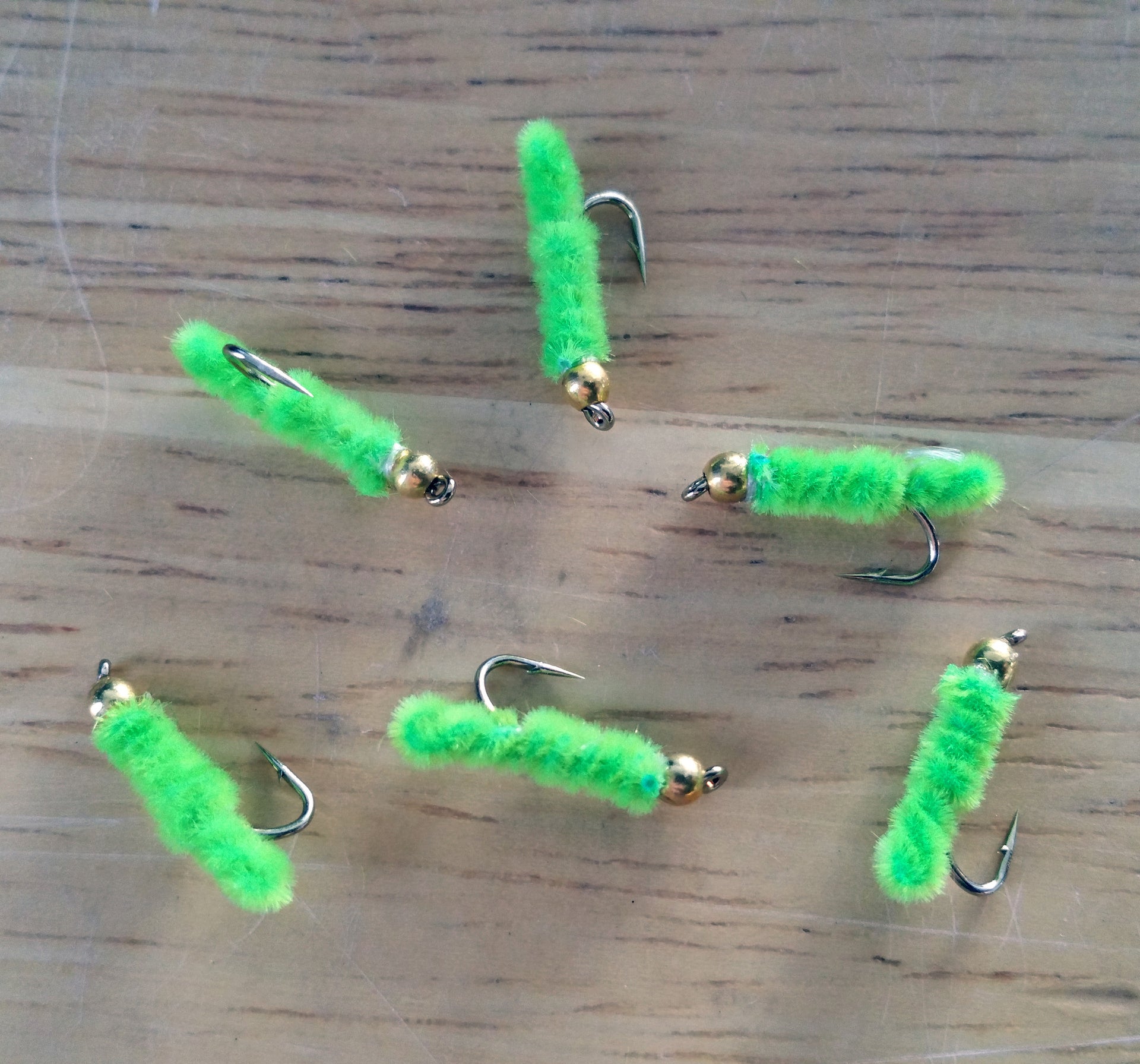 These Green Weenies are tied with bead heads to get them down deep where the fish are.