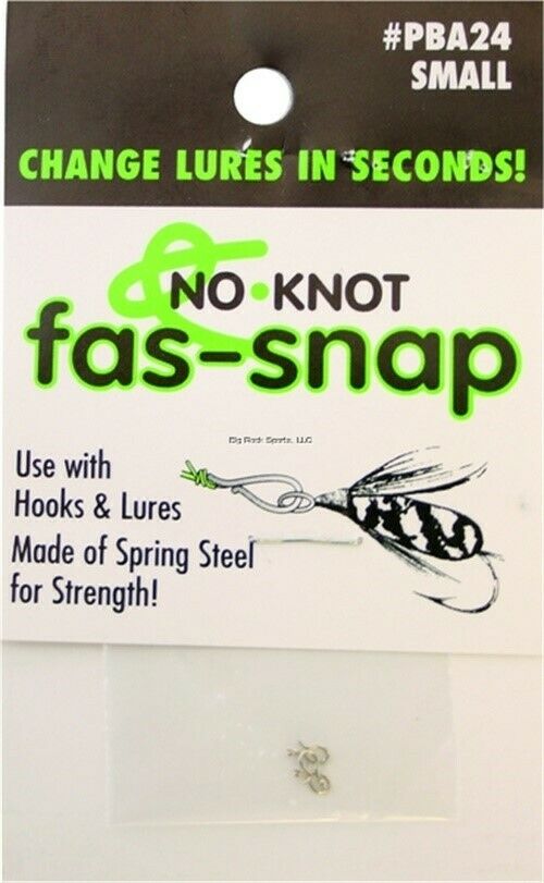 No-Knot Fas-Snaps make changing hooks and lures quick and easy. The small size is used for fly fishing and permits a dry fly to float. The medium size is used for panfish, crappie, etc. Five per pack.