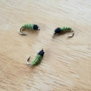 The Olive Caddis Larva mimics the aquatic larva of the caddis fly, which is one of the most common aquatic insects in the United States. Caddis are probably even more common than mayflies. This fly delivers most times and has just the right amount of color and flash.