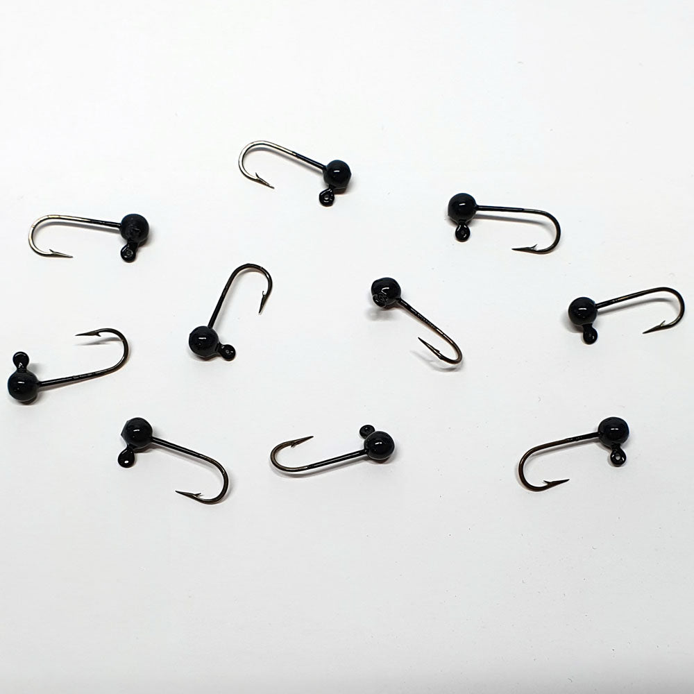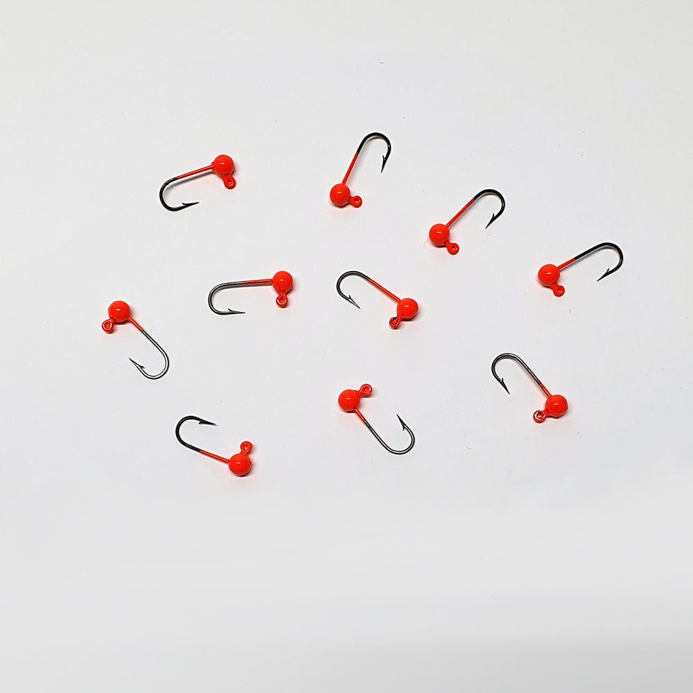 These lead jig heads on bronze hooks are powder painted for durability. Collarless jig heads are great for a number of applications including trout fishing, panfish fishing, ice fishing, fly tying, and drift fishing.